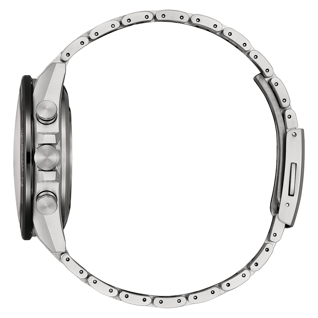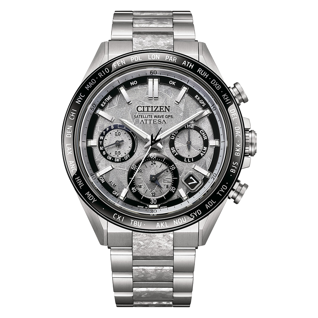 Powerful design and advanced technology drive the new luxury ATTESA. Since its 1987 launch, ATTESA has incorporated titanium-processing know-how and features innovative, world-first technologies that will continue to shape the future. This new limited-edition ATTESA features a 44.6mm Super Titanium™ case in platinum DLC, with sharp facets and fine finishing elevating the look alongside a unique triple-link bracelet featuring crystallized titanium center links. A dual-spherical sapphire crystal adds high clarity to the chronograph's dial details, where black and applied accents upon another crystallized surface present a striking statement on the wrist. This ATTESA features the most advanced movement for Eco-Drive Satellite Wave GPS watches and delivers the world’s fastest time-only signal reception in as little as 3 seconds. Other advanced features include world time in 27 cities (40 time zones), a chronograph, dual time zones, (UTC) universal coordinated time display, a perpetual calendar, as well as daylight savings time, and power reserve and light level indicators. This distinctive chronograph utilizes our proprietary Eco-Drive technology that’s sustainably powered by any light and never needs a battery. Water resistant up to 100 meters. Caliber F950.