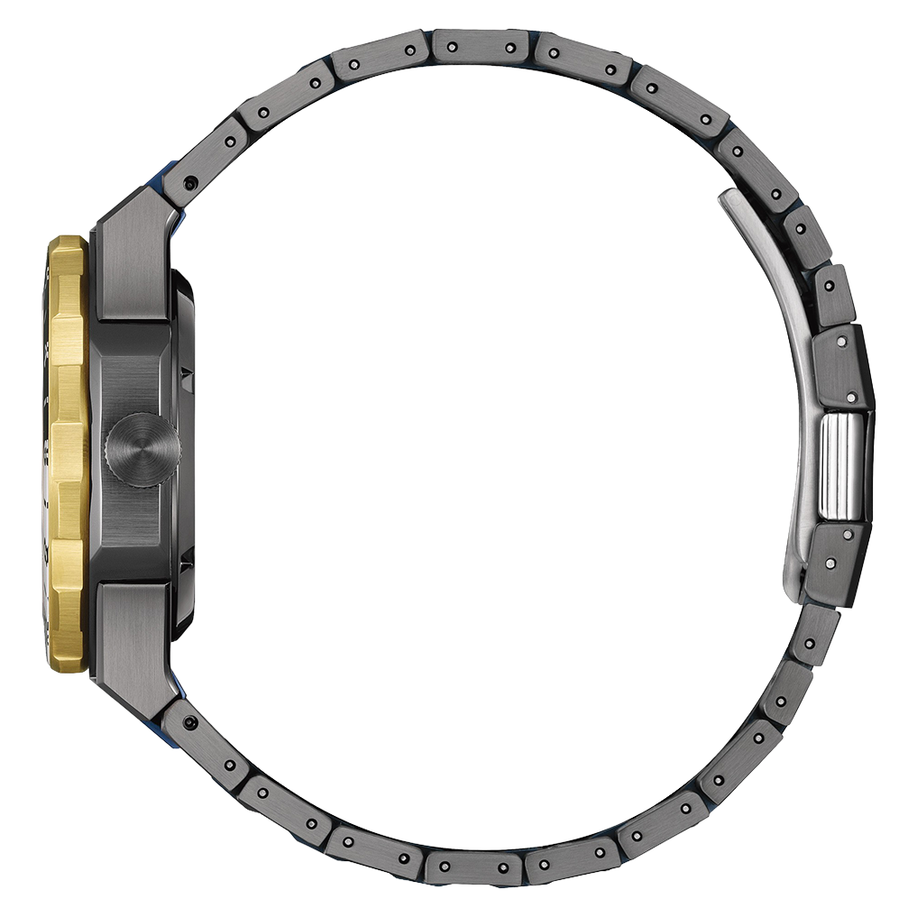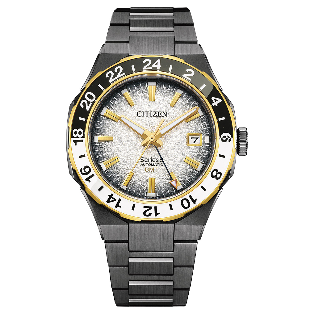 Functional and practical, modern and sporty–the limited-edition Series8 880 The Seasons Winter is the perfect companion for daily wear to spirited travel, and everything in between. Featuring a black-tone stainless steel case with a bi-directional bezel, the 41mm model highlights the best of our creative watchmaking and finishing techniques. Water resistant to 100m and able to withstand magnetic fields up to 16,000 A/m, the watch is powered by the high-performance Caliber 9054, with the mechanism allowing for local and travel time displays alongside an independently set hour hand. The automatic GMT movement is visible through a sapphire exhibition case back and is capable of maintaining an accuracy of +20 / -10 seconds per day with a frequency of 28,800 v/h and a power reserve of 50 hours.A tapered, integrated stainless steel H-link bracelet secures the watch to the wrist, with its design following the aesthetic of the case via the use of polished and brushed facets. Beneath a sapphire crystal, the watch's winter-inspired, gradient dial features gold-tone applied indices and lume-filled hands, each working together to offer incredible legibility alongside a utility-driven 3 o'clock date window; an arrow-tipped hand assists in keeping track of multiple time zones.